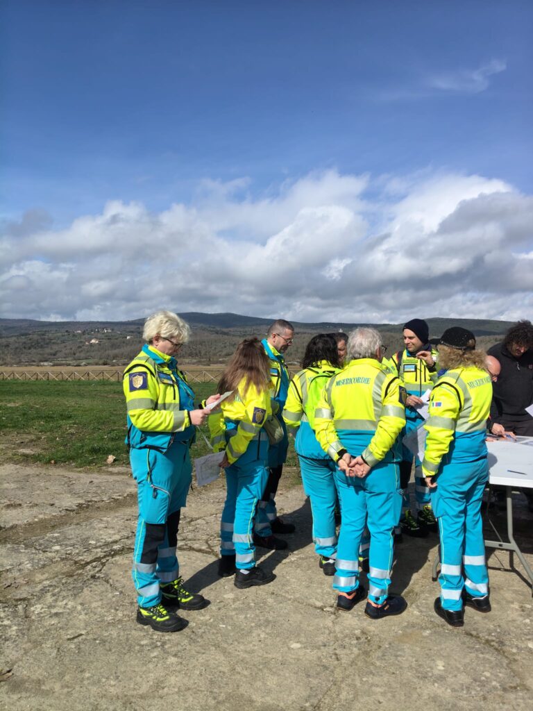 Il percorso è iniziato nella nostra sede operativa del Mandorlo: qui i volontari della Misericordia di Siena, insieme ai colleghi di CAI SIENA, Pubblica Assistenza di Siena, La Racchetta ODV Sez. Siena-Monteriggioni e CB “IL Palio” di Siena, hanno partecipato a due serate teoriche sulle nozioni base della cartografia e sulla lettura delle mappe, seguite da una mattinata di esercitazione pratica per imparare a orientarsi con la bussola.